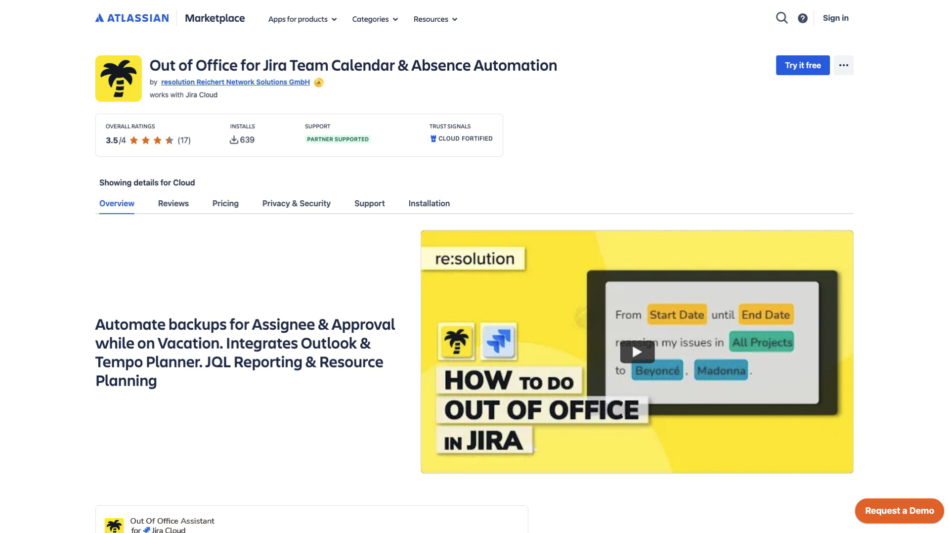 Out of Office Assistant Pricing: https://marketplace.atlassian.com/apps/1218305/out-of-office-for-jira-team-calendar-absence-automation?hosting=cloud&tab=pricing