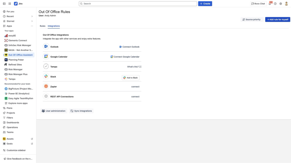 This guide provides step-by-step instructions for installing and configuring the Out of Office Assistant app in your Jira Cloud instance. The app enables automated absence management and work delegation through rules that reassign issues when team members are away.