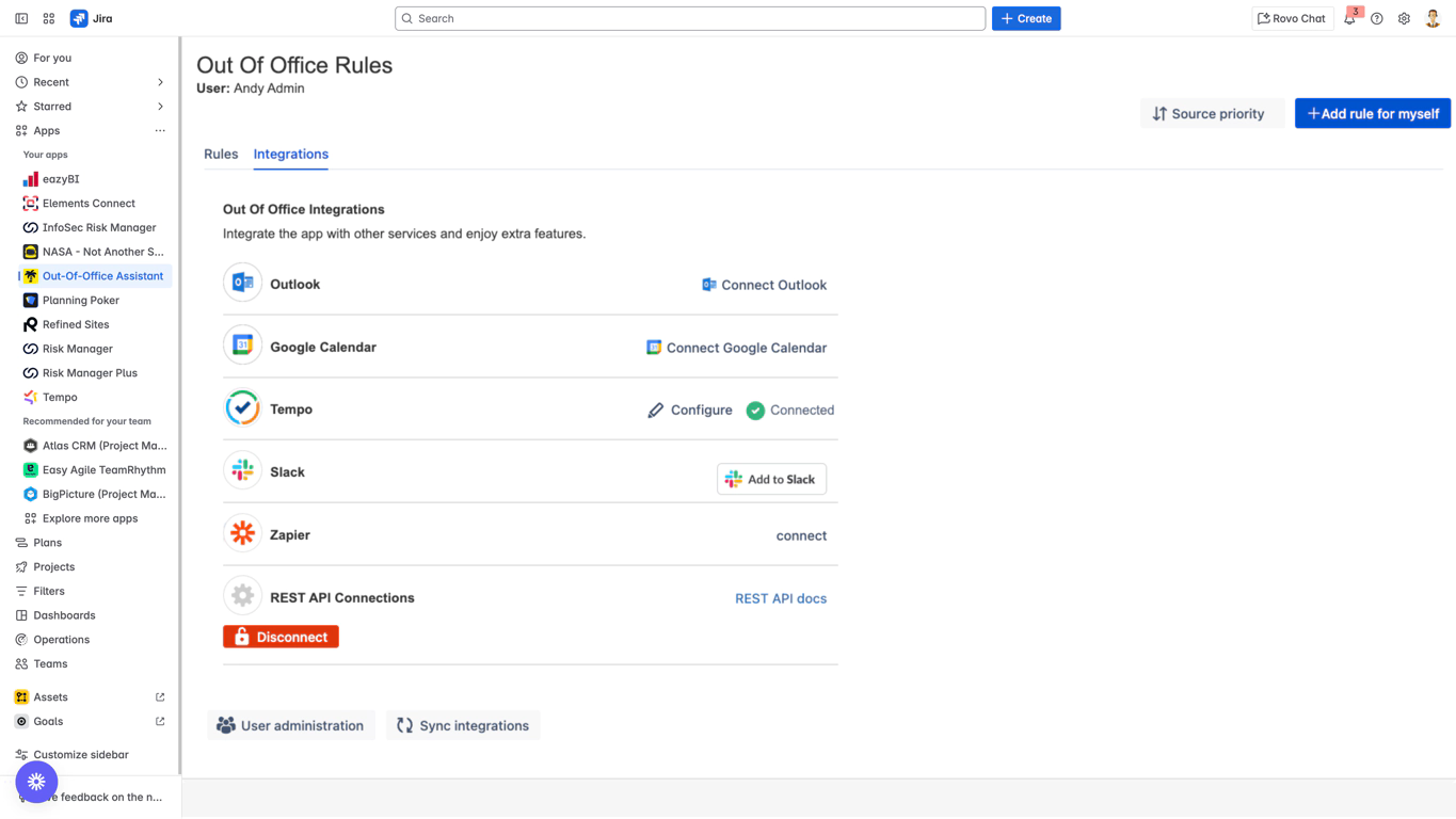 Access to same Jira instance with Out of Office Assistant
